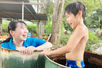 子どもたちを起こします。