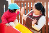 登園する子どもたちを出迎えます。最初は0〜5歳児までが同じ部屋で過ごします。8:00からは0〜2歳、3〜5歳に分かれて遊びます。
