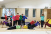 電子タブレット+スピーカーを音源に指導ができるので安心です。
