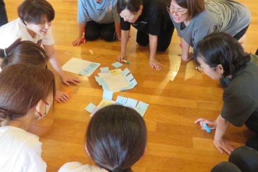 リズムや救急救命研修も行なっています。学んだことは園内研修で職員間で共有し、全員で共通意識を持てるようにしています! | |