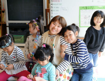 子どもの成長を、その時その時感じられるのが一番うれしいです。家庭環境の影響もあってちょっと荒々しい子がいて、他の子が遊んでいるおもちゃを取っちゃうようなことがよくあったんです。そんな時はいつも私が仲裁に入っていたんですが、ある時見守ってみようと思って黙っていたんですね。そうしたら、その子が私の顔をちらっと見て、何か考えて、自分から他の子に「貸して」って言えたんですよね。すごく頑張って言えたのが分かって、「ああ、成長したなあ」と。「貸して」と言われた子も「いいよ」って言って一緒に遊んでいる姿を見ていたら、胸が熱くなりました。 | |