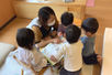 当園では障がいの有無に関わらず、行動や遊びなどにおいて「共に学び・共に育つ」教育を行なっています。誰もが平等に生活するノーマライゼーションの心に触れることにより、自分自身で考え、行動し、自然と人格形成の基礎を培うことができます。また「食」に関しても、管理栄養士による年長児を対象とした食育講座を実施しています。子どもの発達に合わせて遊びながら正しく箸が持てるように保育活動に取り入れています。