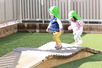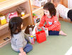 室内には英語の絵本や外国の人形などを飾るほか、外国の方とのコミュニケーションやダンスをしたり歌ったりして、子どもたちが楽しく英語を学べる環境作りを行なっています。とはいえ、大人が遊びを強制したり誘導することはありません。子どもたちが自然と興味を示し、遊び込めるような工夫を行なっています。