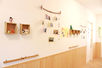園内はシンプルな空間で、壁面にキャラクターものを飾ることはせず、季節を感じる自然物や子どもの作品を飾り、落ち着きのある家庭的な雰囲気。廊下にはドキュメンテーション(子どもたちの写真や活動内容の記録)がたくさん貼ってあり、日々、子どもたちがどんなことを楽しんで、どんな風に過ごしているか把握することができます。また屋上にはオーダーメイドの大型木製遊具があり、子どもたちは高いところに登って景色をながめるのが大好きです。