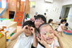 A.学生の間に1年以上アルバイトをさせていただきましたが、掃除をしていてもみなさんが「ありがとう」とか「お願いします」とか声をかけてくださいました。とてもうれしくて、やる気が出ました。1年目の今年は、4歳児を担当させていただいています。わからないことだらけ、覚えることいっぱいの毎日ですが、先輩方が本当に丁寧にサポートしてくださるので、毎日楽しく過ごせています。 | |