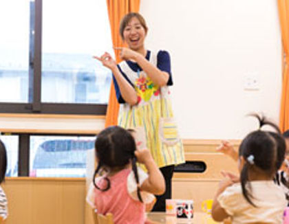 | ■仕事内容 ・保育活動サポート ・お迎え、お見送り対応 ・生活援助(着脱、排せつ等) ・書類作成(ICTシステム導入) ・行事準備 等 ■保育目標 私たちはの保育目標は3つ。「子どもの個性を伸ばし節度ある子どもを育てる」「健康で明るく豊かな心をもつ子どもを育てる」「いろいろな行事を経験しながら季節感を知り、乳幼児期に必要な運動を十分に取り入れ、健康的な身体づくりを行う」。 特に私たちが大事にしているのは、職員と子どもたちが1対1で向き合える場所づくり。子どもたちにしっかり向き合う保育を大切にしています。 |
