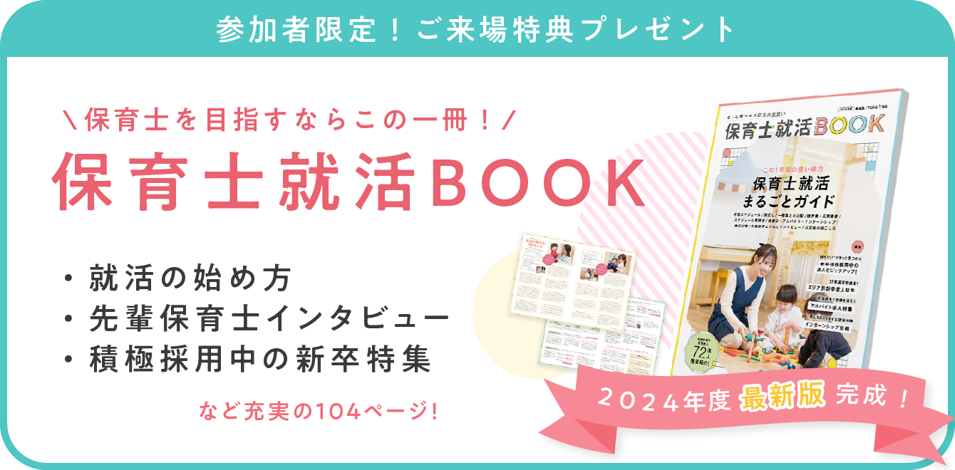 ご来場いただいた皆さまに、もれなく「保育士就活BOOK」を無料プレゼント!