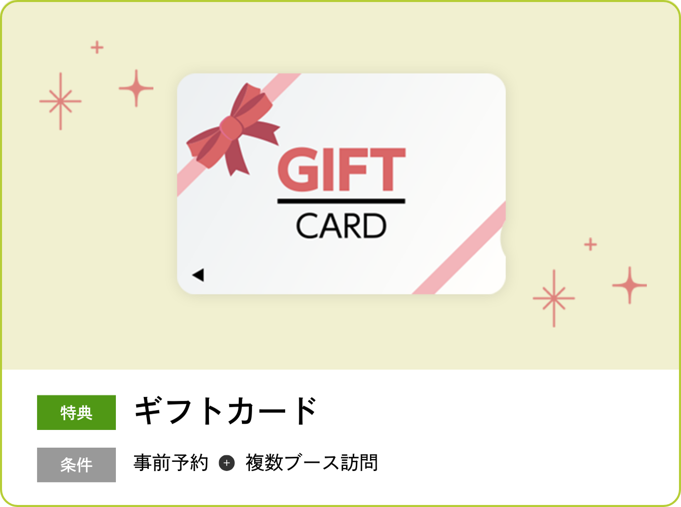 事前予約+複数ブース訪問でギフトカードをプレゼント!